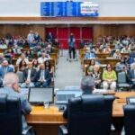 A menção a Iriane Gonçalo é factual, indicando sua presença esperada e seu cargo anterior, sem julgamento de valor sobre ela.
