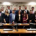A instituição é mencionada como o local onde a advogada Larissa Lago coordena o curso de Direito, de forma informativa.